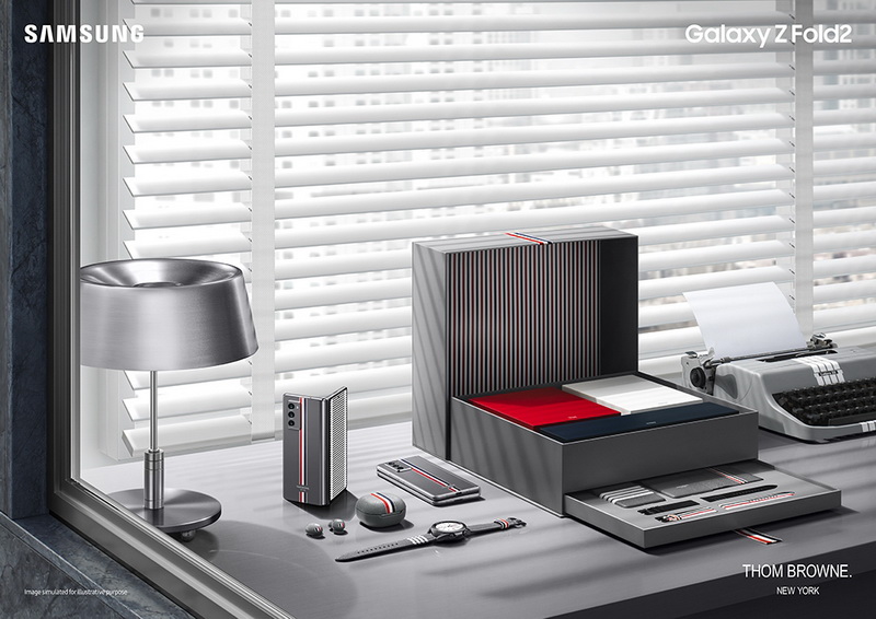โดยในคอลเลคชันประกอบไปด้วย Galaxy Z Fold2 5G สุดยอดนวัตกรรมที่รวมประสบการณ์ของแท็บเล็ตและความคล่องตัวของสมาร์ทโฟนไว้ในเครื่องเดียว, สมาร์ทวอทช์ Galaxy Watch3, หูฟัง Galaxy Buds Live และ Accessories ต่างๆ ซึ่งทั้งหมดมาในดีไซน์สีเทาพร้อมแถบสีน้ำเงินและสีแดงสุดไอคอนิกของ Thom Browne