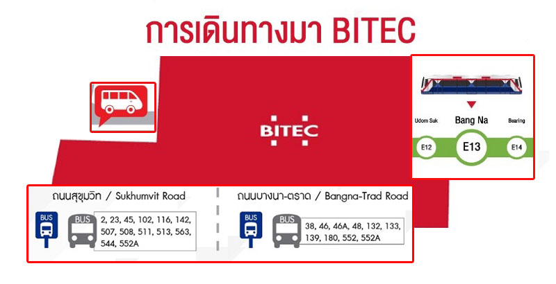 การเดินทางมา BITEC ด้วยรถประจำทางสามารถทำได้โดย