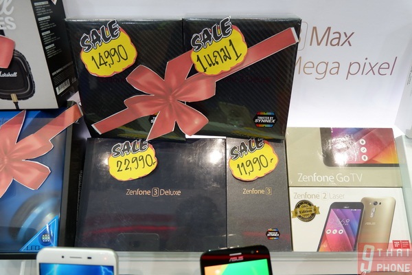 ซึ่งลูกค้าที่สั่งจองและวางเงินมัดจำภายในงานจะได้รับของแถมทั้งหมด 3 ชิ้น ได้แก่ ตุ๊กตาหมี, กระเป๋า ZenFone (สีชมพู) และ Max Pack (Limited) นอกจากนี้ยังมีให้ผ่อน 0% นาน 10 เดือน กับบัตรเครดิตที่ร่วมรายการอีกด้วย