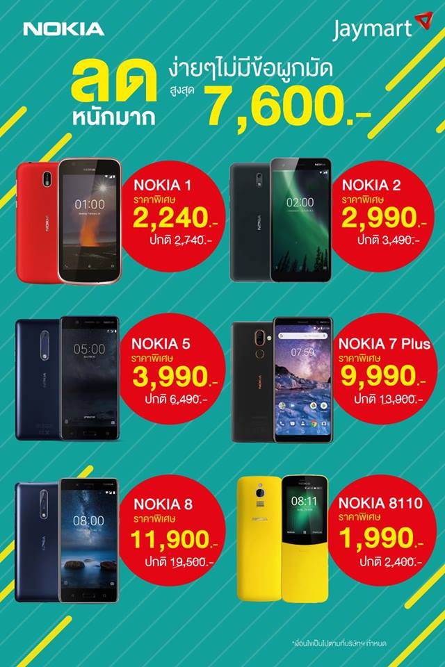 สวัสดีเพื่อนๆ ผู้ติดตามทุกท่านค่ะ วันนี้เรามีโปรโมชั่นสุดพิเศษจากร้าน Jaymart มาฝากให้ได้ชมกัน โดยเพื่อนๆ สามารถเป็นเจ้าของสมาร์ทโฟน Nokia รุ่นที่ร่วมรายการได้ในราคาสุดพิเศษ ลดทันทีไม่มีข้อผูกมัดสูงสุด 7,600 บาท เมื่อชำระแบบเงินสด, บัตรเครดิตเต็มจำนวน หรือผ่าน QR Payment