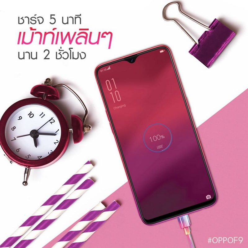 ก็เปิดให้จองกันอย่างเป็นทางการแล้วในประเทศไทย สำหรับ OPPO F9 สมาร์ทโฟนสายเซลฟี่รุ่นใหม่จากตระกูล F Series มาพร้อมหน้าจอรอยบากทรงหยดน้ำที่เรียกว่า Water Drop Screen ฝาหลังที่ไล่เฉดสีอย่างงดงาม พร้อมนวัตกรรมชาร์จไว VOOC Flash Charge ชาร์จเพียง 5 นาที แต่สามารถคุยสายได้นาน 2 ชั่วโมง และสเปคการใช้งานที่ครบครัน