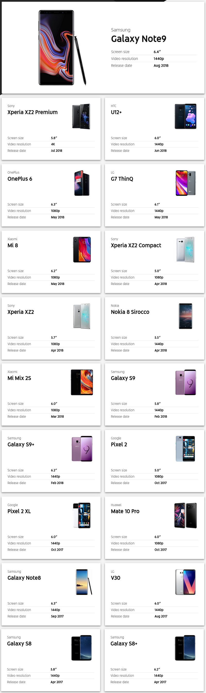 ทั้งนี้ รายชื่อสมาร์ทโฟนต่างๆ ที่ถูกจัดอยู่ในกลุ่ม YouTube Signature Devices ถูกตัดสินจากการที่ผู้ใช้งานสามารถเพลิดเพลินไปกับวิดีโอ HDR, เต็มอิ่มกับการรับชมวิดีโอแบบ 360 องศา, รองรับการชมแบบเฟรมเรทสูง, รองรับ HDR, เทคโนโลยีการแปลงสัญญาณ, รองรับการแสดงผลแบบ 4K, รองรับช่วงไดนามิคสูง, อัตราเฟรมสูงประสิทธิภาพ DRM และดาวน์โหลดวิดีโอได้อย่างรวดเร็ว เป็นต้น
