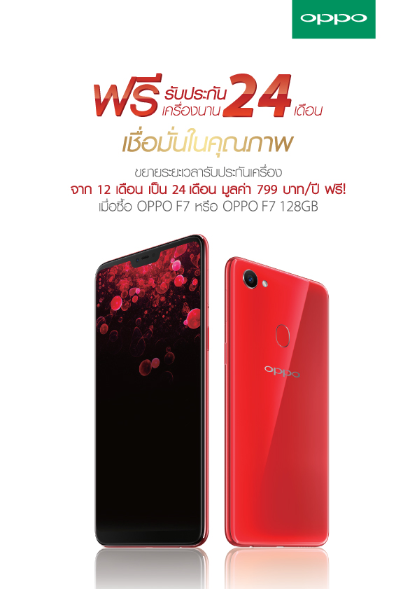 รับฟรีของขวัญพิเศษพร้อมประกันจอแตกและประกันเครื่อง เมื่อจอง OPPO F7 วันนี้ – 24 เมษายนนี้ จองด่วน!