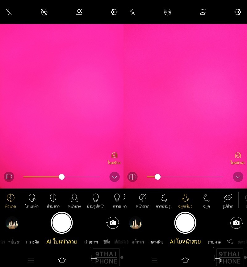สำหรับ AI Face Beauty รองรับการปรับแต่งใบหน้าสวย ที่สามารถเลือกปรับได้ทั้ง ผิวนวล, โทนสีผิว, ปรับความขาว, หน้าเรียว, ปรับรูปหน้า, กราม, ดวงตากลมโต, ช่วงตา, หน้าผาก, ปรับรูปจมูก, ความเรียวของจมูก และรูปปาก