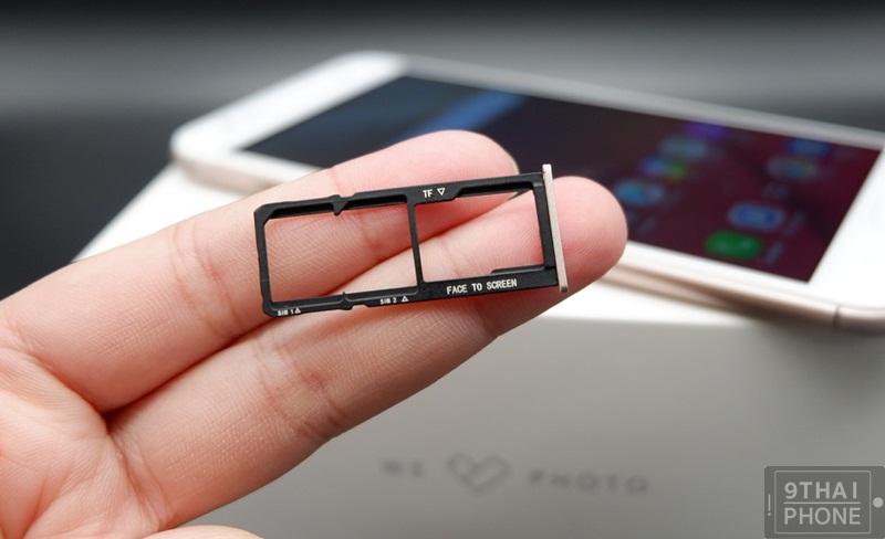 – รองรับการใช้งาน 2 ซิมการ์ด แบบ Triple-Slot Tray คือ SIM+SIM+ MicroSD Card ในถาดเดียว