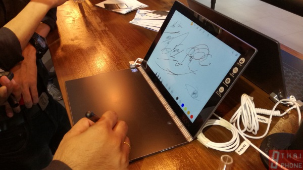 สิ่งที่หลายคนทึ่งกับ Yoga Book ก็คือ การใช้ปากกา Real Pen เขียนบนกระดาษ แล้วทุกอย่างที่ขีดเขียน ไปปรากฏบนจอภาพทันที