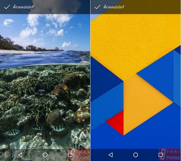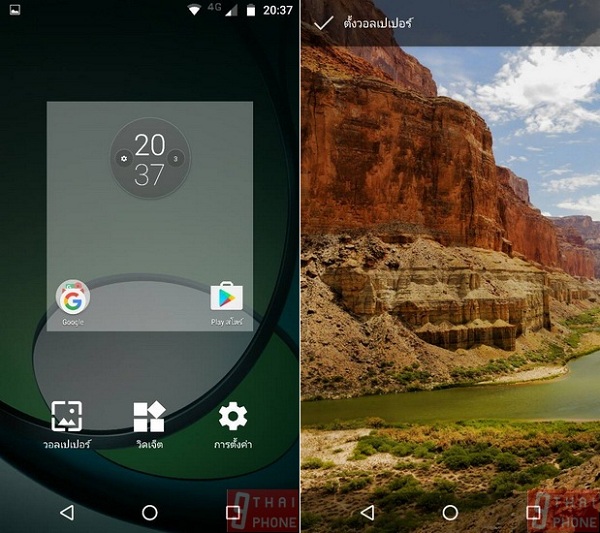 หากเรากดค้างที่หน้าจอ Home screen บนพื้นที่ว่างๆ จะปรากกฏเมนูการตั้งค่าวอลเปเปอร์สีสันสดใส วิดเจ็ตต่างๆ ปรับแต่งหน้าจอโฮมสกรีนได้และการตั้งค่าเครื่องทันที