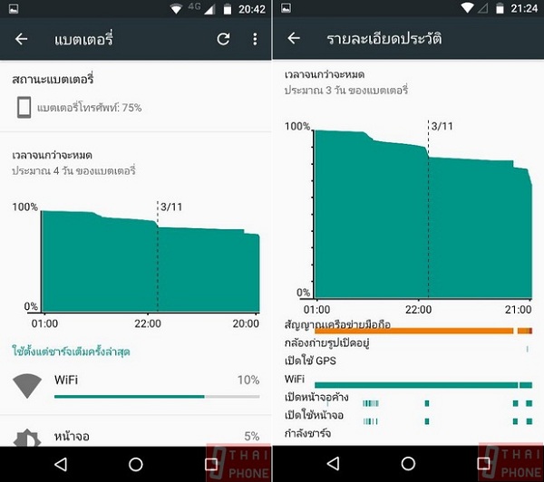 สำหรับ TurboPower charging เทคโนโลยีการชาร์จแบตเตอรี่ความเร็วสูง ถือว่าทำหน้าที่ของตัวเองได้เป็นอย่างดี ดูจากภาพตัวอย่างที่แอดมินได้นำมาให้ชมกัน แบตเตอรี่จำนวน 49% ถูกชาร์จครั้งแรกเมื่อเวลา 14.41 น. ต่อมาภายในเวลาเพียงไม่นานชาร์จได้มากถึง 97% แถมยังมีเวลาบอกอีกด้วยว่าเหลือเวลาอีกกี่นาทีจึงจะชาร์จแบตเตอรี่เต็ม