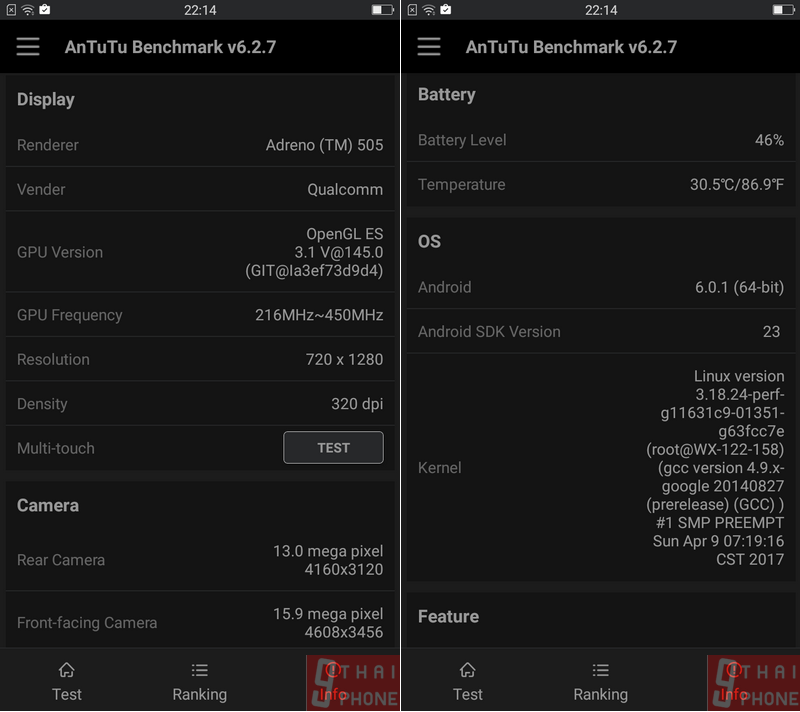 | ระบบปฏิบัติการ : | – Android 6.0.1 Marshmallow ครอบทับ Color OS 3.0 |