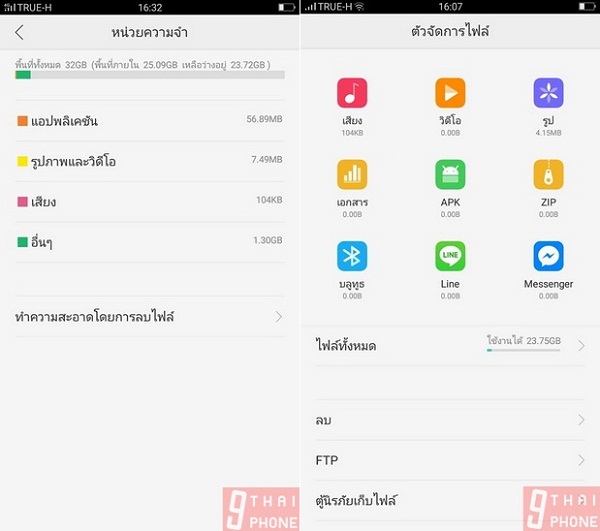 มีหน่วยความจำภายในขนาด 32GB เหลือพื้นที่ใช้งานจริงประมาณ 23.72GB