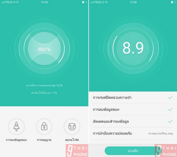 ในส่วนนี้เป็นส่วนของศูนย์ความปลอดภัย ซึ่งเป็นแอพฯ จัดการระบบสแกนไวรัส  ลบข้อมูลไฟล์ขยะ และการอนุญาตเข้ารหัส หรือแอพฯ ต่างๆ