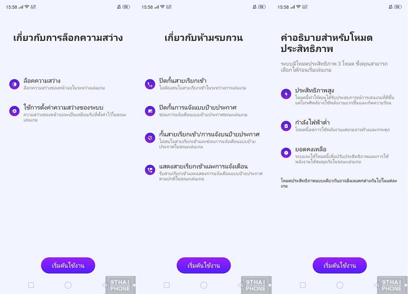 อาทิ ปิดแจ้งเตือน, กั้นการรบกวนต่างๆ, เร่งความเร็วกราฟิก และปิดการปรับแสงสว่างแบบอัตโนมัติ เป็นต้น