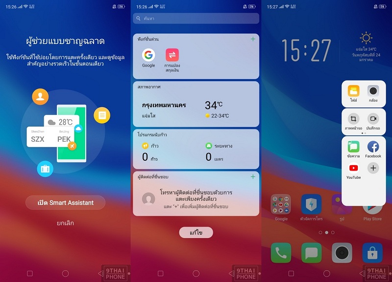 หน้า Home screen สไลด์ไปทางขวาจะเป็นฟังก์ชัน Google Assistant หรือผู้ช่วยส่วนตัวของเรา ที่มีความสามารถในการตอบรับ โต้ตอบกลับ และเข้าถึงการทำงานต่างๆ บนเครื่องสมาร์ทโฟนอย่างรวดเร็ว ใช้งานง่ายๆ ด้วยการกดค้างไปที่ปุ่มพาวเวอร์ (ต้องตั้งค่าเปิดใช้งานก่อนนะคะ)