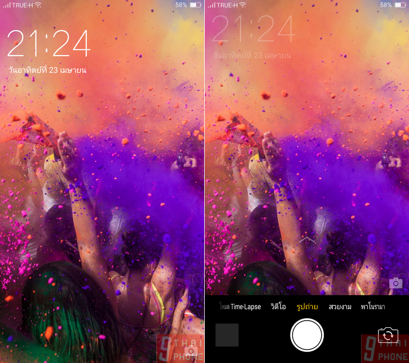 หน้าจอ Lock screen ปลดล็อกตัวเครื่องด้วยการสไลด์หน้าจอขึ้นด้านบน และเข้าถึงกล้องถ่ายภาพได้อย่างรวดเร็วด้วยการเลื่อนมุมขวาขึ้นค่ะ