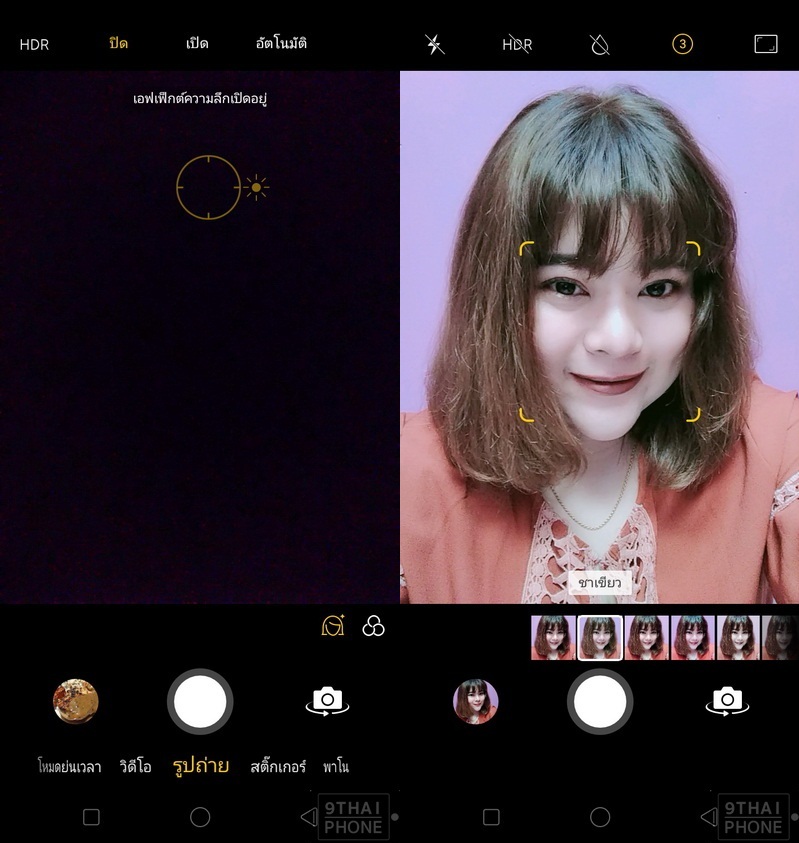 กล้องหน้ารองรับโหมด AI Beautification 2.0 หรือ AI Beauty 2.0 ปรับค่าความสวยเนียนได้ในพริบตาแบบ Auto ด้วยระบบ AI และเลือกปรับค่าได้ถึง 6 ระดับ ถัดมาเป็นโหมดถ่ายภาพพาโนรามาเก็บภาพในแนวกว้าง
