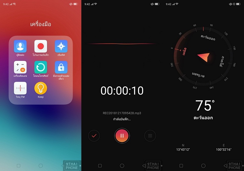 โหมดเครื่องมือการใช้งานมีมาให้แบบครบครัน เริ่มต้นที่ เครื่องบันทึกเสียง, เข็มทิศ