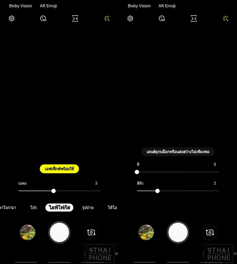 ถัดมาเป็นโหมด Live Focus ถ่ายภาพหน้าชัดหลังเบลอ สามารถปรับค่าผิวเนียนสวย และระดับความเบลอของฉากหลังได้เองตามใจชอบ