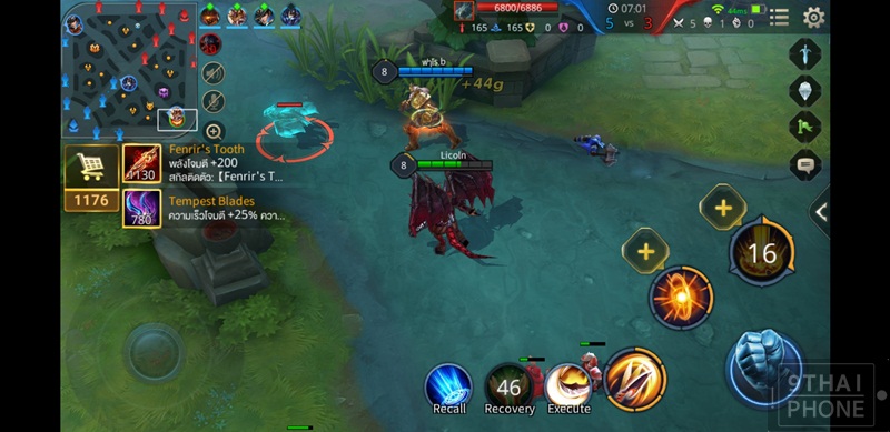 เล่นเกม ROV จำนวน 3 แมทซ์ ซัดกันนัว 3 ตารวด ปรับตั้งค่าสุดทุกอย่าง โดยใช้เวลาทดสอบเล่นเป็นเวลาราว 40 นาที แบตเตอรี่ลดเหลือ 50% เท่านั้น ตัวเครื่องไม่เกิดอาการร้อน Galaxy Note8 ก้าวผ่านปัญหาภาพไม่ชัด หรือเกมกระตุกมาได้อย่างง่ายดาย หน้าจอ Super AMOLED ความละเอียด Quad HD+ ให้ภาพสีสันสดใสมากค่ะ