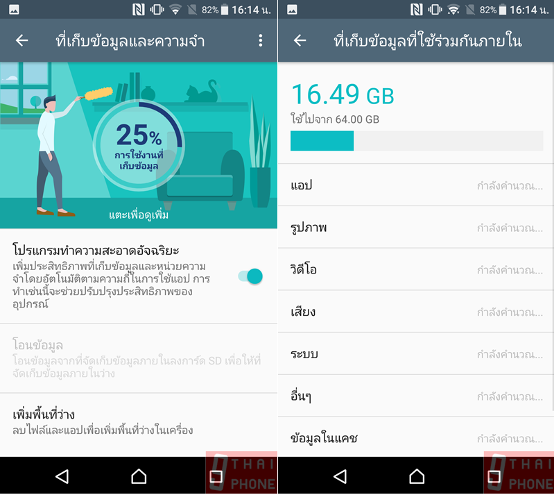 พื้นที่เก็บข้อมูลและความจำจะมีโปรแกรมพิเศษช่วยจัดการความจุภายในเครื่อง และลบแคชที่ไม่จำเป็น