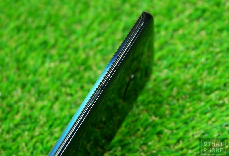 พื้นที่จอแสดงผลทั้งสองด้านโอบตัวเครื่องตามดีไซน์ความโค้งมน แต่ให้ความรู้สึกที่กระชับ ถือจับสบายมือ ราวกับว่าตัวเครื่องไร้ขอบทั้งสองด้าน หน้าจอมีพื้นที่การใช้งานค่อนข้างเยอะ ดูโล่งสบายตามากค่ะ