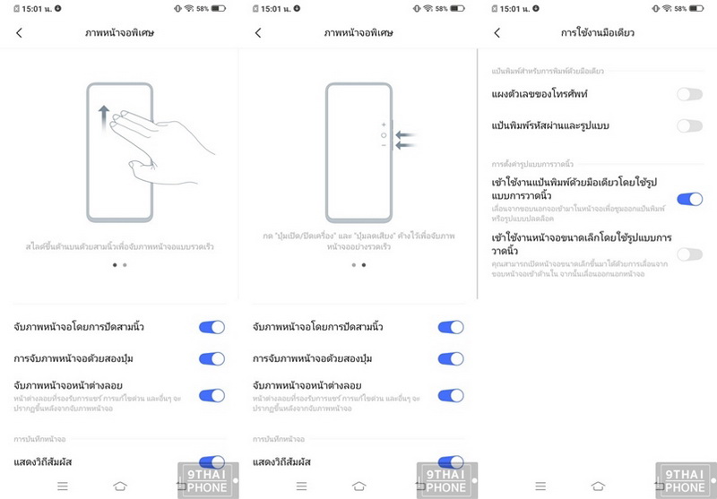 การแคปหน้าจอสามารถทำได้ง่ายๆ ด้วยการใช้ 3 นิ้วปัดขึ้น หรือกดปุ่มพาวเวอร์ + ลดเสียงข้างตัวเครื่องค่ะ