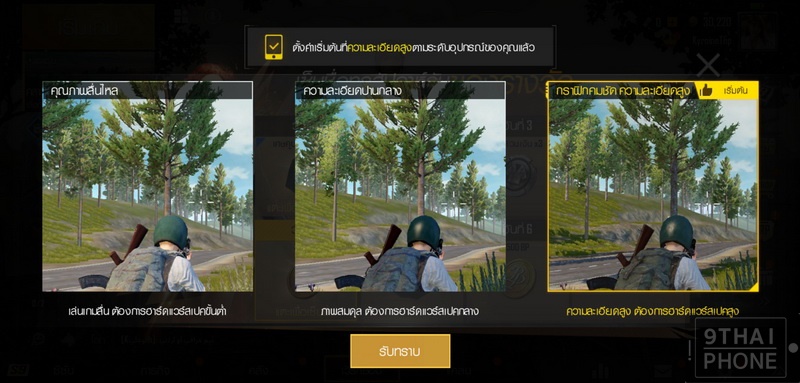 แรกเริ่มเมื่อเข้าสู่เกม PUBG MOBILE ระบบได้ปรับอัตโนมัติที่ความละเอียดสูงตามสเปคของอุปกรณ์เพื่อให้สามารถเล่นเกมได้แบบไม่สะดุด