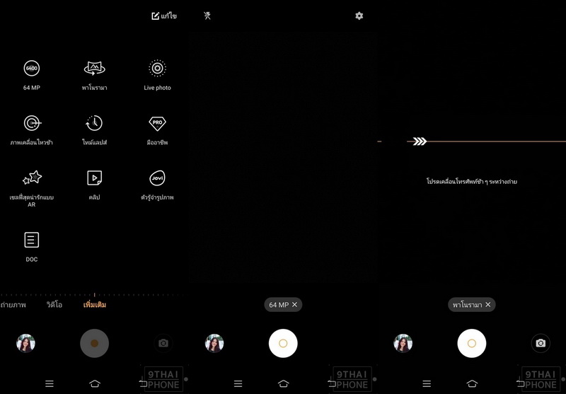 ส่วนโหมดการใช้งานพิเศษกล้องหลังรองรับทุกฟังก์ชันเลยค่ะ ได้แก่ 64MP ถ่ายภาพด้วยความคมชัดสูง, Panorama เก็บภาพในแนวกว้าง