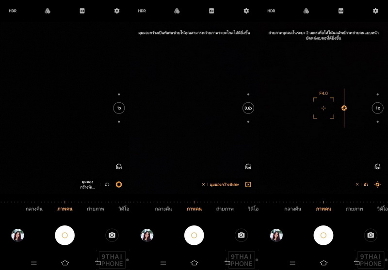 ถัดมาเป็นโหมดถ่ายภาพปกติ รองรับ Selfie Softlight Flash, HDR, ปรับอัตราส่วนของภาพถ่าย, ฟิลเตอร์สี และเอฟเฟกต์แสงให้เลือกใช้งาน