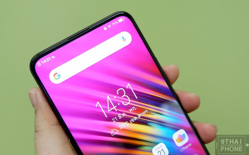ด้านบนตัวเครื่อง พบแค่เพียงรูไมโครโฟน และกล้องหน้าแบบ Pop-up ที่สามารถเก็บซ่อนไว้ในตัวเครื่องเมื่อไม่ได้ใช้งาน และจะเด้งขึ้นมาจากด้านบนเมื่อเปิดใช้งานกล้องหน้าค่ะ