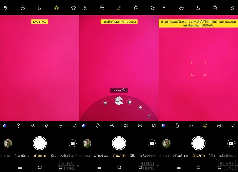ถัดมาเป็นโหมดถ่ายภาพปกติ ที่รองรับการถ่ายภาพเหมือนโหมด AI ใบหน้าสวย แต่เพิ่มการถ่ายภาพ Live Photo เข้ามาด้วย, รองรับเอฟเฟ็กต์ AI Portrait Lighting แสงสำหรับถ่ายภาพบุคคล และการถ่ายภาพบุคคลในระยะ 2 เมตร ถ่ายแบบหน้าชัดหลังเบลอ