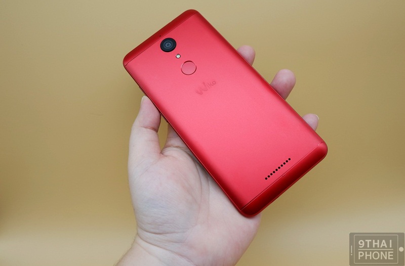 ด้านหลัง Wiko View ตัวเครื่องโลหะเมทัลดีไซน์ ฝาหลังสามารถแกะออกได้ ตัวเครื่องมีความบางพกพาง่าย มีน้ำหนักเบา ผิวสัมผัสเรียบด้าน เฉดสีแดงสวยงาม