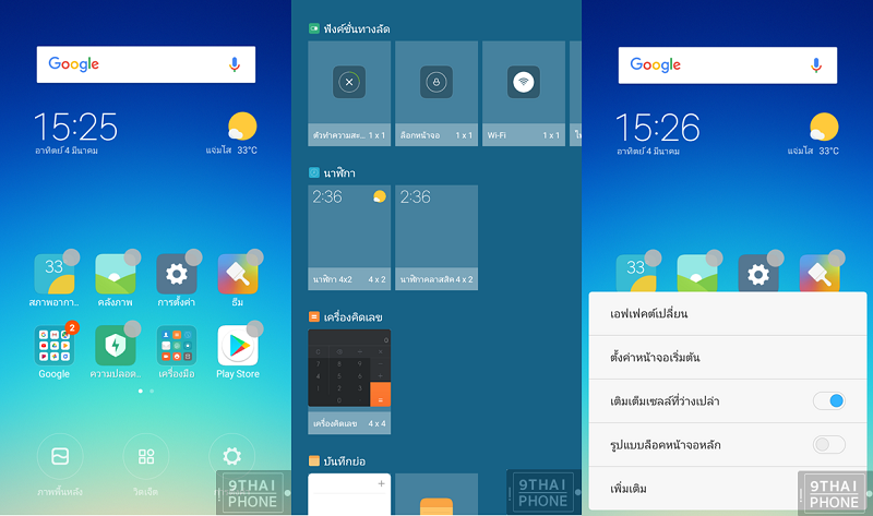 สามารถปรับแต่งหน้า Home screen ไม่ว่าจะเป็นขนาดไอคอน การจัดเรียงไอคอน ขนาดตัวอักษร และตั้งค่าวอลเปเปอร์ หรือตั้งค่าอื่นๆ ด้วยการกดค้างไปที่ปุ่ม Recent App