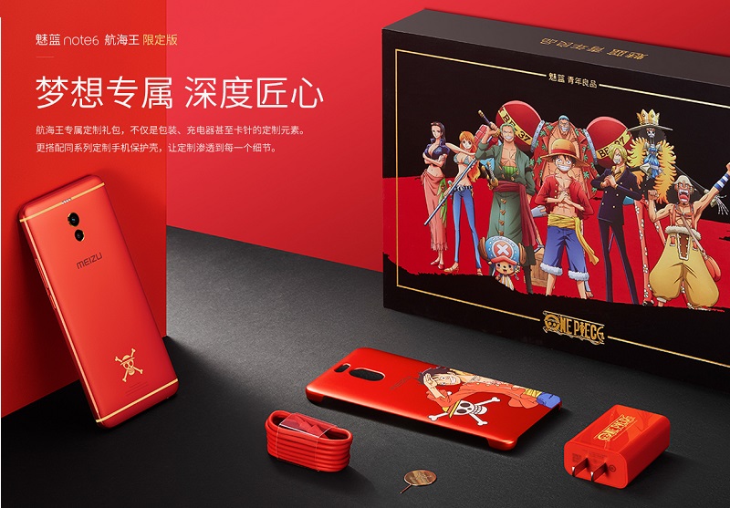 ถือว่าเป็นค่ายผู้ผลิตสมาร์ทโฟนจากประเทศจีนที่กำลังมาแรงอยู่ในขณะนี้อย่าง Meizu ที่ครั้งนี้มาแบบจัดเต็มด้วยการเปิดตัว Meizu M6 Note เวอร์ชัน One Piece Limited Edition เพื่อมาเอาใจเหล่าบรรดาสาวก แฟนคลับการ์ตูนดังจากญี่ปุ่นอย่าง One Piece โดย Meizu M6 Note รุ่น One Piece Limited Edition นั้นจะมาพร้อมกับตัวเครื่องด้านหลังที่มีสีแดง ด้านล่างเป็นสัญลักษณ์ของกลุ่มโจรสลัดหมวกฟางเป็นสีเหลืองทอง ตามด้วยแถบเส้นยาวบน/ล่างสีเหลืองทอง ส่วนด้านหน้าจะเป็นสีดำ