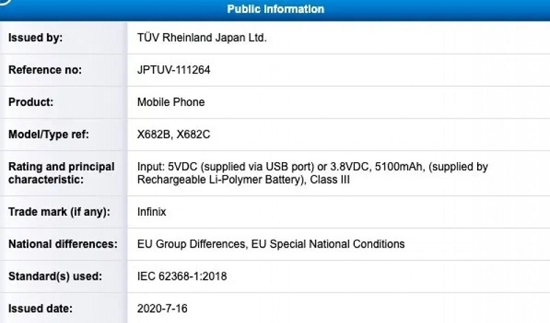 โดยทางแหล่งข้อมูลได้ระบุว่า Infinix Hot 10 จะใช้หน้าจอความละเอียด 1640 x 720 พิกเซล (HD+) ติดตั้งชิปเซ็ต Helio G70 จับคู่กับ RAM 4GB ขณะที่ใบรับรอง TUV Rheinland เผยว่า X682C และ X682B จะมีแบตเตอรี่ความจุ 5100 mAh