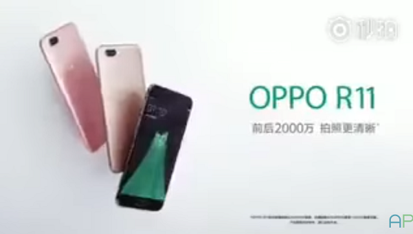 จากคลิปวิดีโฆษณาดังกล่าวมีความยาวราว 18 วินาที แต่ด้วยความละเอียดของคลิปที่มีระดับเพียง 144p จึงทำให้เห็นตัวเครื่องไม่ชัดเท่าไหร่ แต่ก็ไม่ยากเกินเราจะเห็นกล้องเลนส์คู่ด้านหลังที่ถูกจัดวางในรูปแบบของแนวนอน สำหรับรายละเอียดโฆษณา OPPO R11 จะมีให้เลือก 2 สี ได้แก่ สีทอง และสีโรสโกลด์
