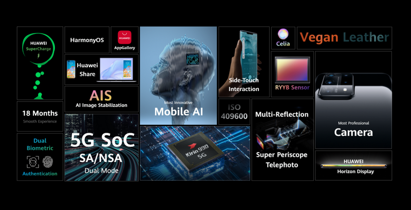 ตอบรับยุคแห่งความเร็วระดับ 5G สมาร์ตโฟน Huawei Mate 40 Series เป็นเจ้าแรกที่พัฒนาชิปเซ็ตแบบ 5G SoC หรือ System-on-Chip ขนาดเล็กที่สุด 5 นาโนเมตร ที่รวมเอาระบบและโมเด็ม 5G ไว้ในตัว