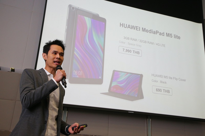 Huawei เปิดตัวแท็บเล็ตรุ่นล่าสุด Huawei MediaPad M5 lite แท็บเล็ตผู้ช่วยอัจฉริยะด้านความบันเทิงเต็มรูปแบบในดีไซน์บางเบา ด้วยขนาดหน้าจอ 8 นิ้ว น้ำหนักเบาเพียง 310 กรัม แต่เร็วแรงเต็มอารมณ์ด้วยคุณภาพเสียงพลังสูงที่ปรับแต่งโดย Harman Kardon ที่มากับขุมพลังจากชิปเซ็ต Kirin 710, GPU Turbo แบตสุดอึด 5,100 mAh ในราคาสุดเร้าใจ เพียง 7,990 บาท พร้อมของสมนาคุณ ในงาน Thailand Mobile Expo 2019