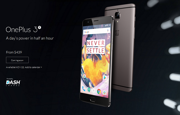 เปิดตัว OnePlus 3T รุ่นท็อปส่งท้ายปี RAM 6GB ขุมพลัง Snapdragon 821 กล้องหน้า 16MP