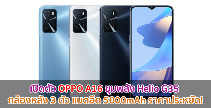 เปิดตัว OPPO A16 ขุมพลัง Helio G35 กล้องหลัง 3 ตัว แบตอึด 5000mAh ราคาประหยัด!