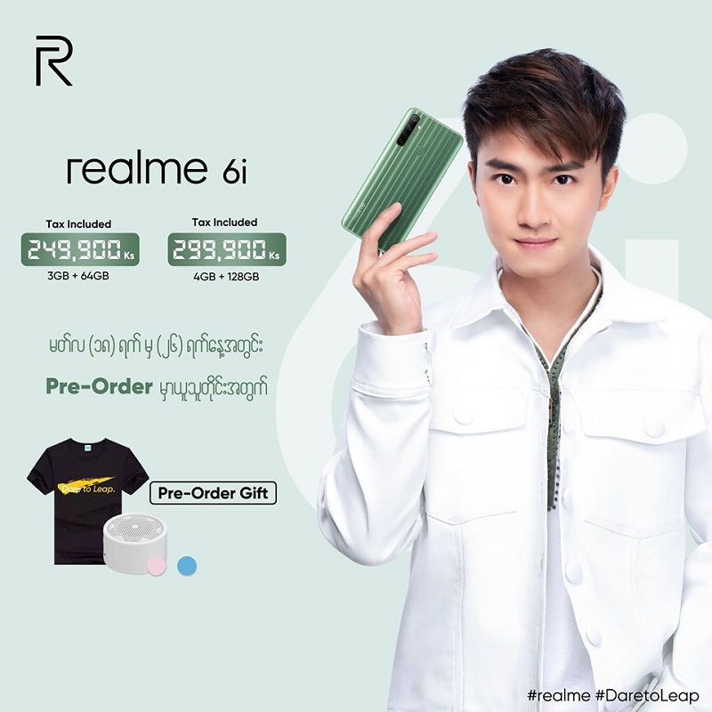 ทั้งนี้สำหรับ realme 6i จะมีให้เลือกทั้งหมด 2 สีคือ White Milk และ Green Tea ที่มีการออกแบบจากนักออกแบบชาวญี่ปุ่น Naoto Fukasawa มีราคาวางจำหน่ายในรุ่นเริ่มต้นอยู่ที่ 249,990 จ๊าดพม่า หรือประมาณ 5,700 บาท โดยเปิดให้สั่งจองได้แล้วตั้งแต่วันนี้ – 26 มีนาคมนี้ พร้อมรับของแถม จากนั้นจะทำการเปิดขายจริงวันที่ 29 มีนาคมนี้ ในประเทศเมียนมาร์