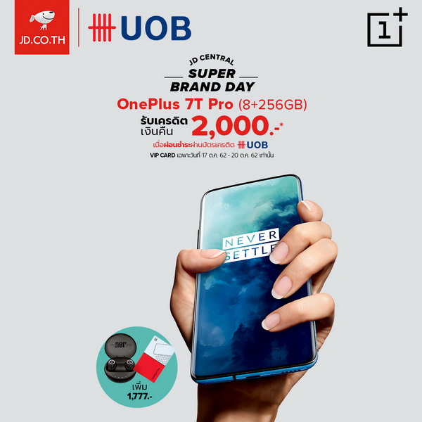 พิเศษ! สำหรับลูกค้าที่ซื้อภายในวันที่ 17– 20 ต.ค. 2562 ผ่านช่องทางการจัดจำหน่ายอย่างเป็นทางการของ OnePlus ประเทศไทยอย่าง AIS, JD Central, Lazada และบนเว็บไซต์