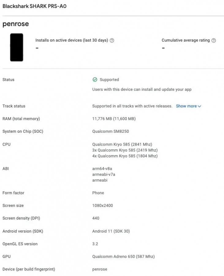 ขณะที่ใกล้จะถึงกำหนดการเปิดตัวอย่างเป็นทางการ ก็พบว่ามีข้อมูล Black Shark รุ่นใหม่ปรากฏบน Google Play Console เพิ่มเติมแล้ว แต่เป็นรุ่นที่มาพร้อมรหัสโมเดล PRS-A0 และมีโค้ดเนมว่า “penrose”