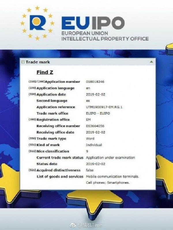OPPO จดเครื่องหมายการค้า “Find Z” ว่าที่เรือธง Snapdragon 855 กล้องซูม 10x Lossless ชาร์จไว Super VOOC และอาจรองรับ 5G ด้วย!!