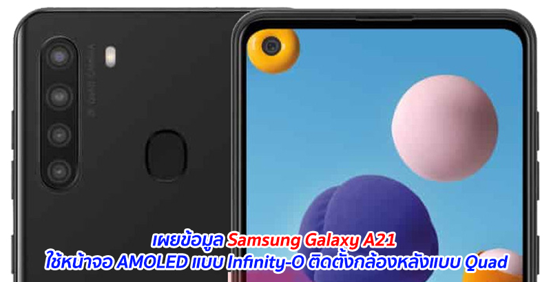 เผยข้อมูล Samsung Galaxy A21 ใช้หน้าจอ AMOLED แบบ Infinity-O ติดตั้งกล้องหลังแบบ Quad