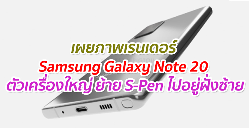 เผยภาพเรนเดอร์ Samsung Galaxy Note 20 ตัวเครื่องใหญ่ ย้าย S-Pen ไปอยู่ฝั่งซ้าย
