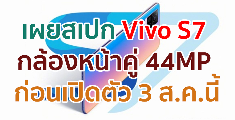 เผยสเปก Vivo S7 จัดเต็ม! กล้องหน้าคู่ 44MP ขุมพลัง Snapdragon 765G ก่อนเปิดตัว 3 สิงหาคมนี้