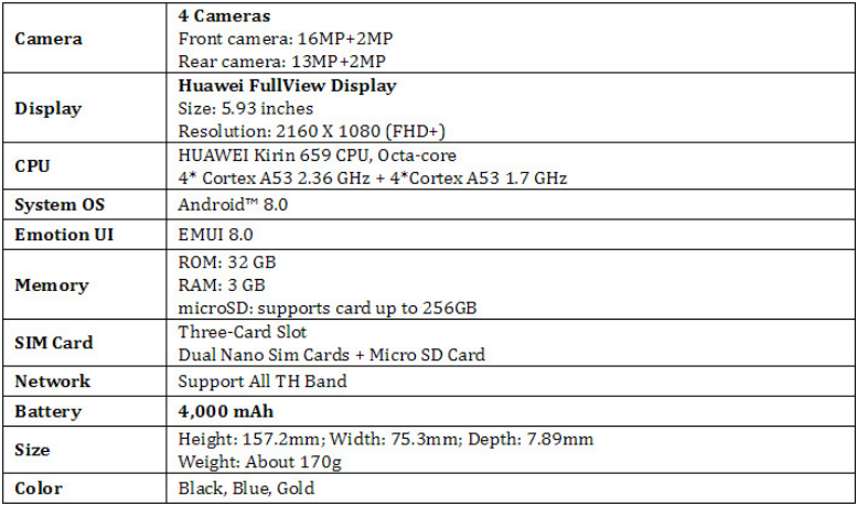 – CPU Kirin 659 แบบ Octa Core ความเร็ว 2.36GHz