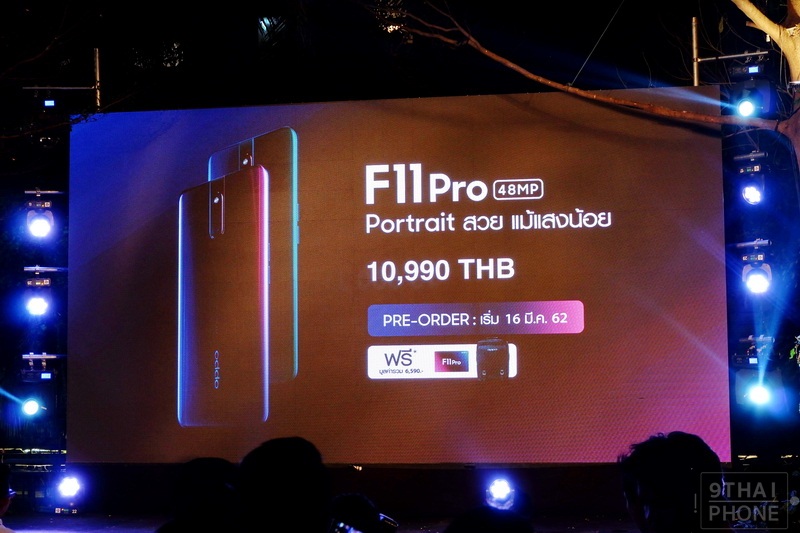 โดย OPPO F11 Pro เปิดพรีออเดอร์ 16 มีนาคม 2562 ณ OPPO Brand Shop และร้านค้าตัวแทนจำหน่ายชั้นนำทั่วประเทศ พร้อมรับฟรีของแถมสุดพิเศษ Smart Bag และ VIP Card จาก OPPO มูลค่ากว่า 6,950 บาท (จำนวนจำกัด)