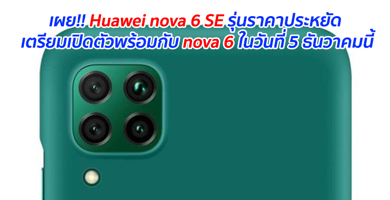 หลังจากที่ก่อนหน้านี้มีข่าวหลุดออกมาว่าทาง Huawei จะทำการเปิดตัวสมาร์ทโฟนรุ่นใหม่ nova 6 รองรับ 5G ในวันที่ 5 ธันวาคมนี้ ล่าสุดพบเบาะแสเพิ่มเติมว่าในวันดังกล่าวจะมีการเปิดตัวเพิ่มอีกหนึ่งรุ่นคือ Huawei nova 6 SE ที่เป็นรุ่นราคาประหยัด
