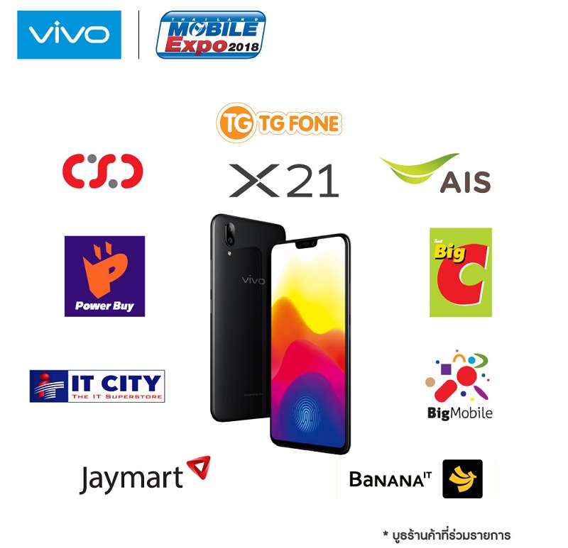 โปรโมชั่นสุดพิเศษของ vivo X21 ในงาน Thailand Mobile Expo 2018 วันที่ 24 – 27 พ.ค. 2561 นี้เท่านั้น!!!